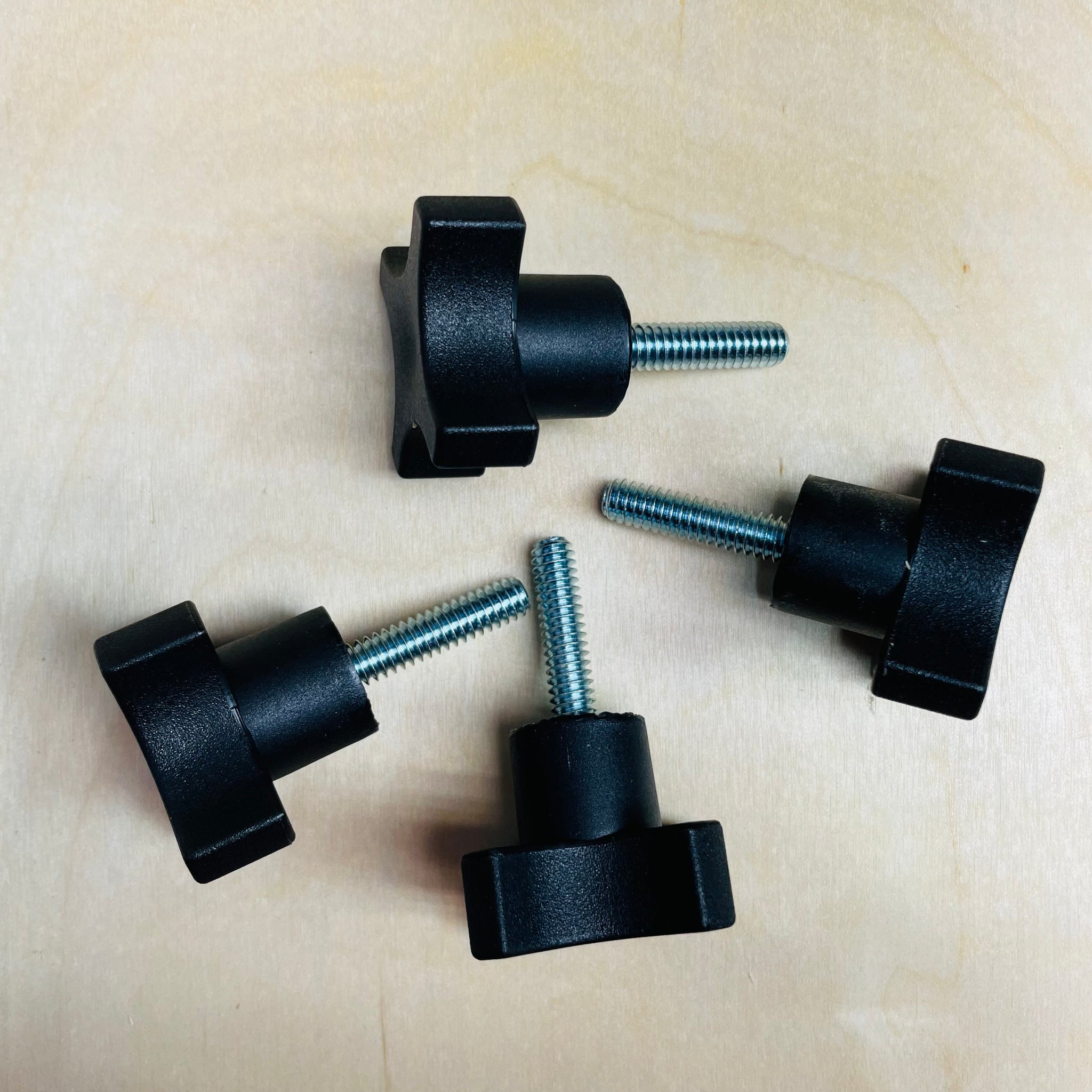 Rents with 4 x hand-tight knobs requiring no power tools or 4 x 1/4" bolts to be secured with a screwdriver