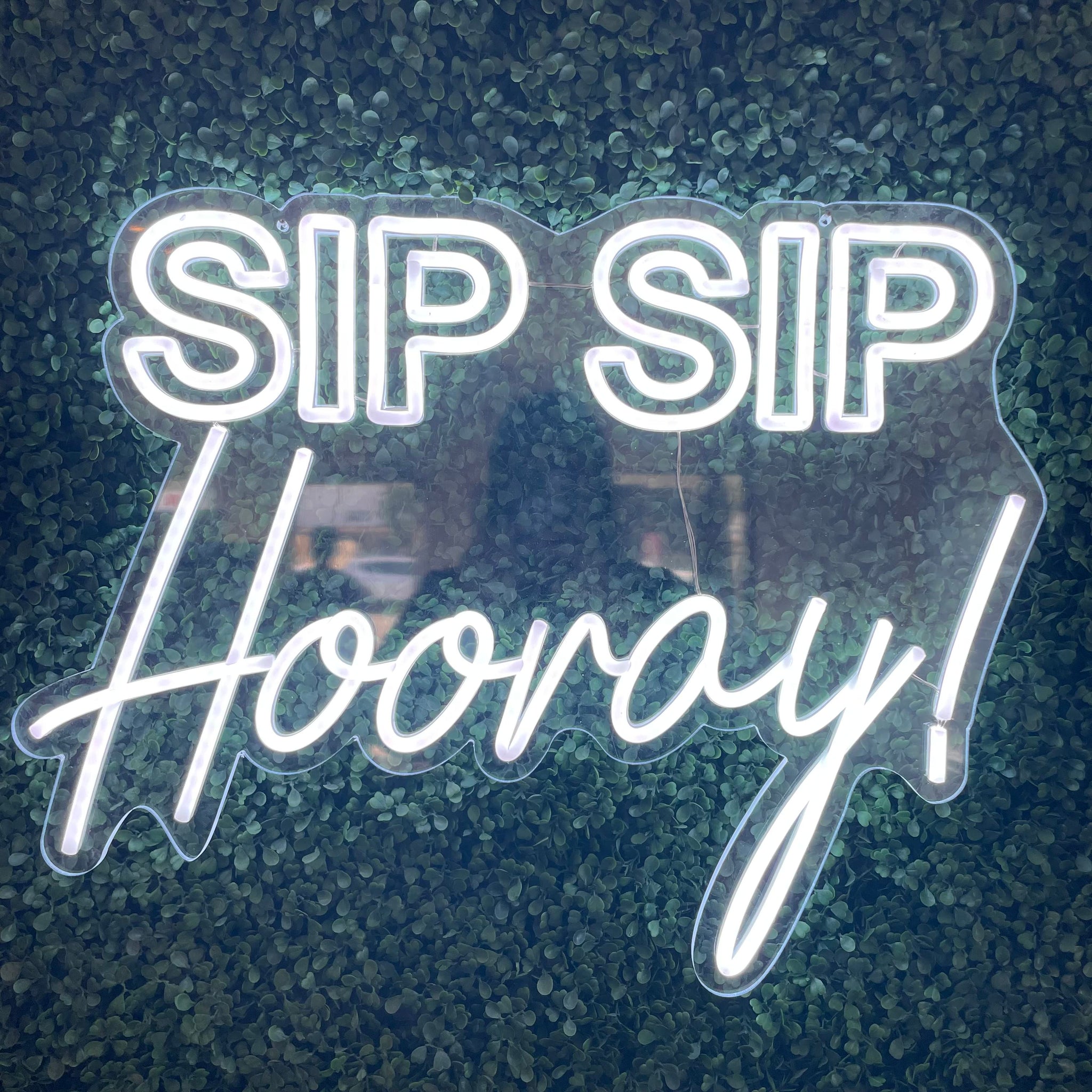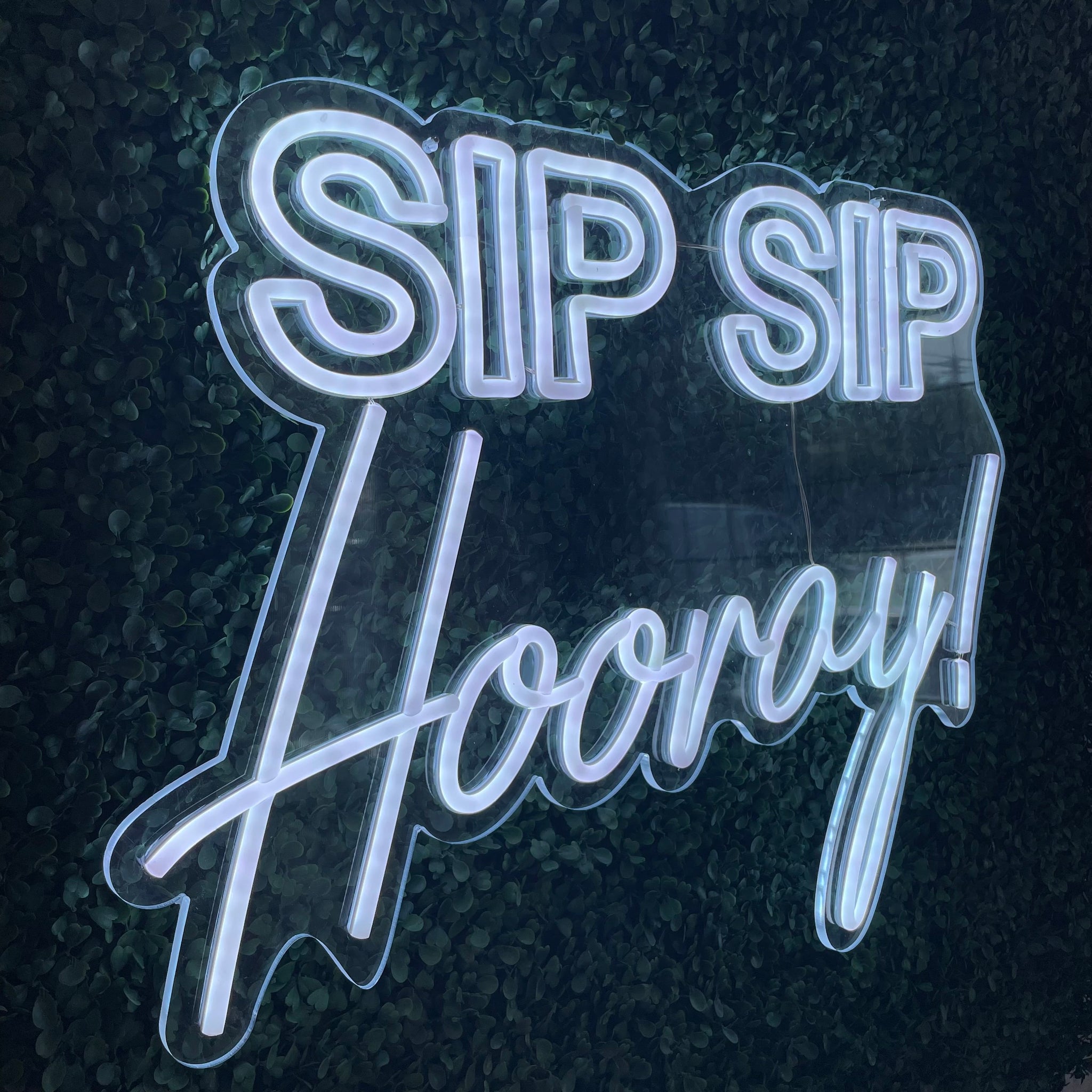 DETAILS: - Made of clear acrylic and LED neon tubing - Dimmer attachment optional - Available in white and color changing - Approximately 23 inches wide x 19 inches tall - Intended for indoor use only